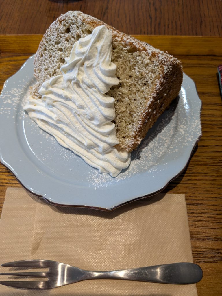 アールグレイの茶葉と紅茶を生地に入れ込んだシフォンケーキです。ひと口食べると、口の中にアールグレイの風味が広がります。甘さもちょうどよく、ボリュームたっぷりでありながら、あっという間に完食してしまいました。見た目ほど重くないのも嬉しいポイントです。