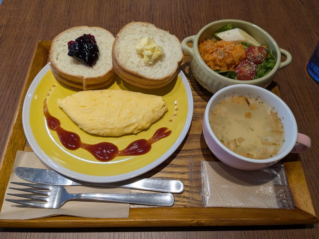 平日のモーニング限定メニューのオムレツです。マスターがホテル勤務の友人から伝授してもらったテクニックで調理した一品とのこと。ふわふわの食感はもちろん、卵が持つ甘みと濃厚なバターの風味が絶妙な味わいを醸し出します。オムレツだけでなく、パンとジャム、さらにサラダとスープもセットで付いてくるのも嬉しいです。
