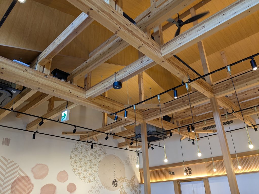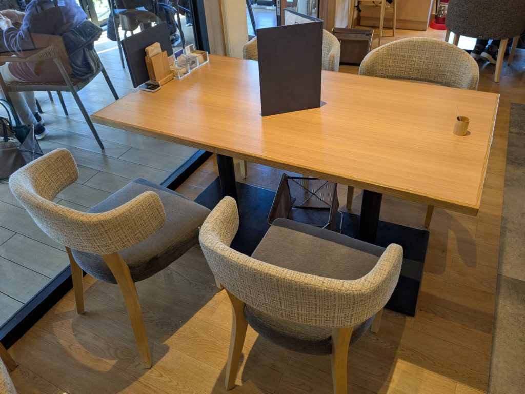 店内は木を多用した和モダン空間で、ゆったり過ごせるテラス席や広めの席配置になっています。